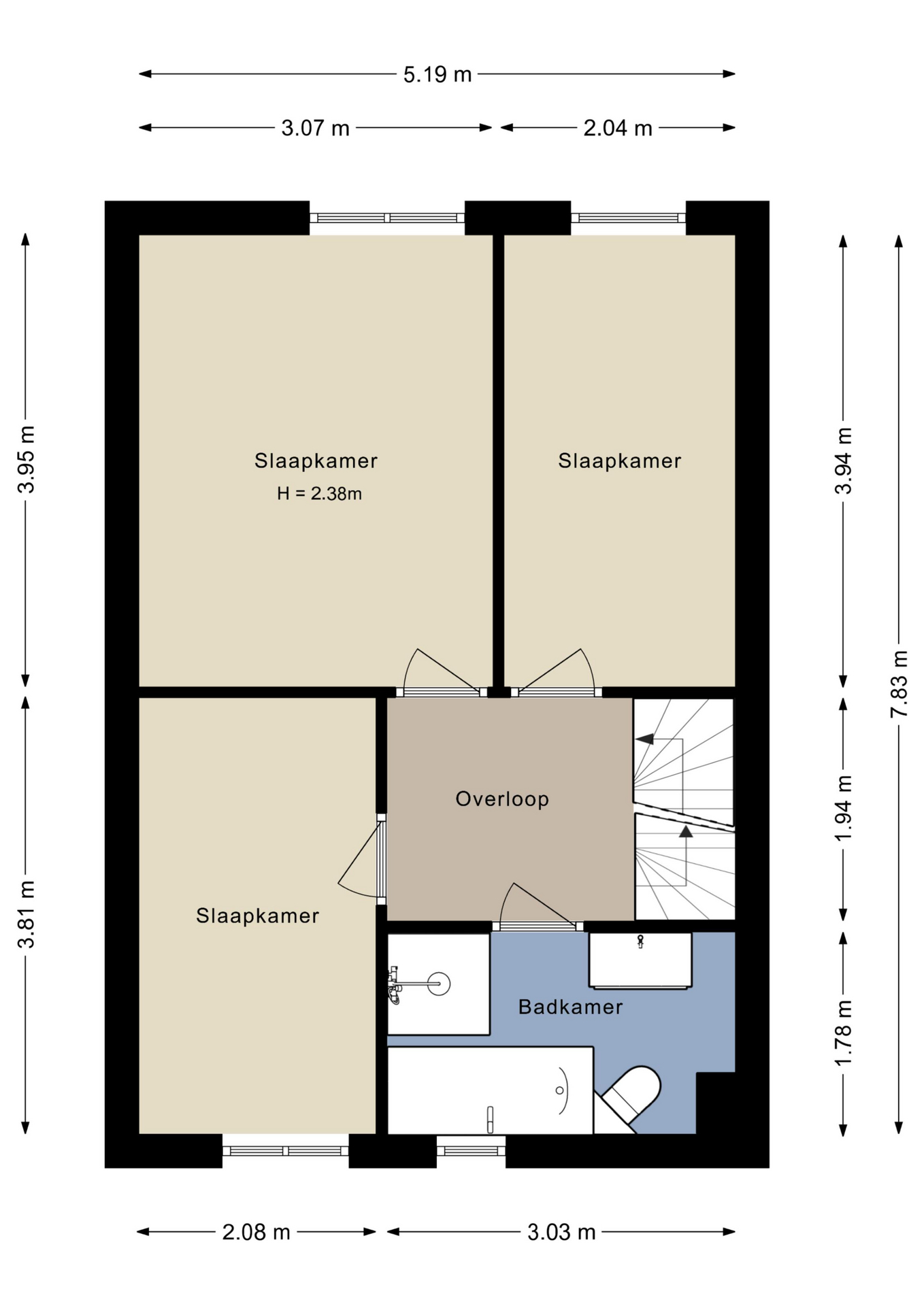 De 1e verdieping beschikt over drie ruime slaapkamers, die alle zijn voorzien van een laminaatvloer,