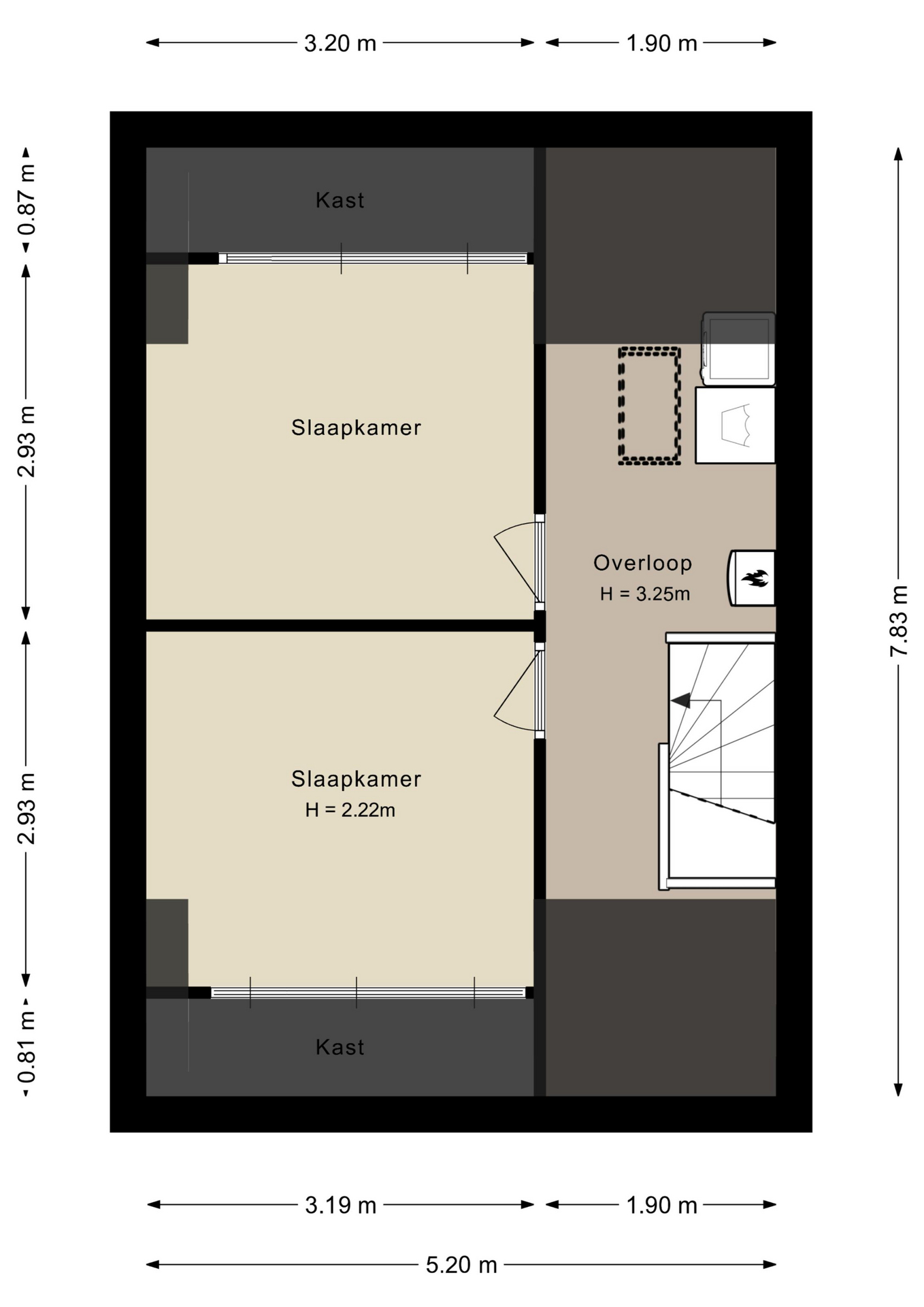 De verdieping beschikt daarnaast over twee goede slaapkamers, die beide zijn voorzien van een laminaatvloer, glad gestucte wanden -en plafond, dakkapel met nieuwe kunststof kozijnen en HR++ beglazing , airco-unit en bergruimte achter de schuifdeuren.