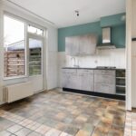 Aan de achterzijde bevindt zich de open keuken, die is voorzien van een standaard, recht keukenblok. De deur in de keuken biedt toegang tot de achtertuin.