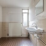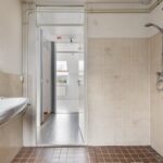 De badkamer is standaard afgewerkt en is voorzien van een inloopdouche, wastafel en wasmachineaansluiting.