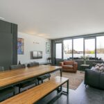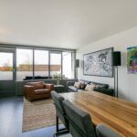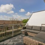 Het grote dakterras heeft een afmeting van circa 13m2 en biedt fraai en vrij uitzicht over de singel en groene woonomgeving. Door de zuidwestelijke ligging is het hier heerlijk genieten van de zon! Mocht je toch liever in de schaduw vertoeven, dan biedt de elektrische zonwering uitkomst.