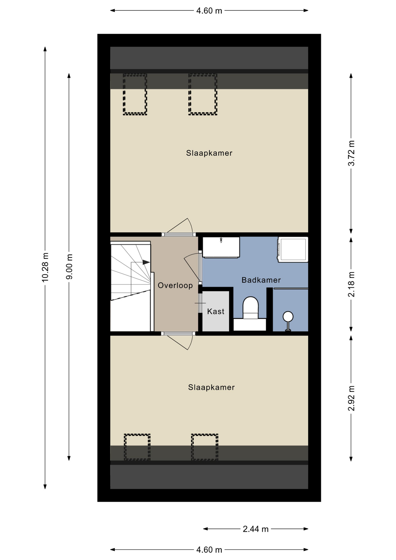 De 3e verdieping beschikt over twee zeer ruime slaapkamers, die beide over de volle breedte van de woning strekken en zijn voorzien van een Novilonvloer, glad gestucte wanden en twee Velux-dakramen. De master bedroom lift aan de achterzijde en is tevens voorzien van een vaste kastenwand en radiatorombouw.