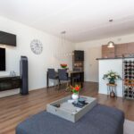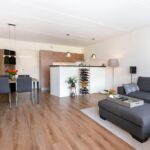 De woonkamer is gelegen aan de achterzijde van de woning en is heerlijk ruim en licht met een oppervlakte van circa 22 m². Via de grote raampartijen kijk je vrij uit over de singel. De woonkamer is voorzien van een radiator met modulerende thermostaat, laminaatvloer, glad gestucte en structuurverf wanden.