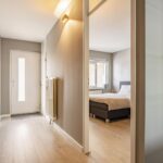 Entree tot de ruime hal met laminaatvloer, glad gestucte wanden -en plafond, paneeldeuren, intercom, meterkast met nieuwe groepenkast en toegang tot de overige ruimten van het appartement.