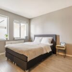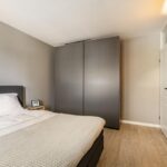 De ruime slaapkamer bevindt zich aan de galerijzijde, heeft een oppervlakte van circa 13m² groot en is eveneens voorzien van een laminaatvloer, glad gestucte wanden -en plafond alsmede een brede raampartij met rolluik.