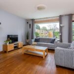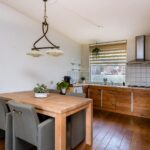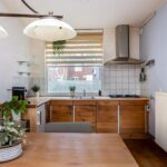 Je betreedt de woning via de ruime hal met toilet, trapopgang en een deur naar de garage. Aan het einde van de gang geeft een deur toegang tot de woonkamer. Bij binnenkomst in de woonkamer word je aangenaam verrast door de nette houten vloer, die zich uitstrekt over de royale ruimte. Een unieke schouw met oudhollandse tegels en karakteristieke houtkachel springt in het oog en geeft de kamer veel sfeer. Het is heerlijk licht in de woonkamer door raampartijen aan beide zijden. Aan de achterzijde kun je een gezellige zithoek inrichten bij de houtkachel en met uitzicht op de zonnige achtertuin. Aan de voorzijde is plek voor een sfeervolle eethoek, grenzend aan de open keuken. De open keuken wordt gekenmerkt door fraaie houten fronten. Je vindt hier diverse inbouwapparaten, zoals een vierpits gasfornuis en afzuigkap.