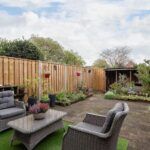 De sfeervolle achtertuin is grotendeels betegeld en in verschillende hoeken vind je beplanting. Je kunt hier comfortabele zithoeken inrichten en heerlijk van de zon en het buitenleven genieten. De tuin is omheind door een mooie houten schutting, waardoor je bovendien veel privacy hebt. Achterin vind je een houtopslag en een achterom. Ook de voortuin is netjes betegeld en hier bevindt zich de garage voor je auto, fietsen en andere opbergspullen.