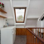 Op de ruime overloop van de zolder vind je de witgoedaansluitingen en cv-installatie (2014). Een deur geeft toegang tot de derde slaapkamer. Ook deze slaapkamer is ruim en profiteert van veel lichtinval door een groot dakraam. De slaapkamer is voorzien van een stijlvolle lichte vloer.