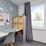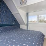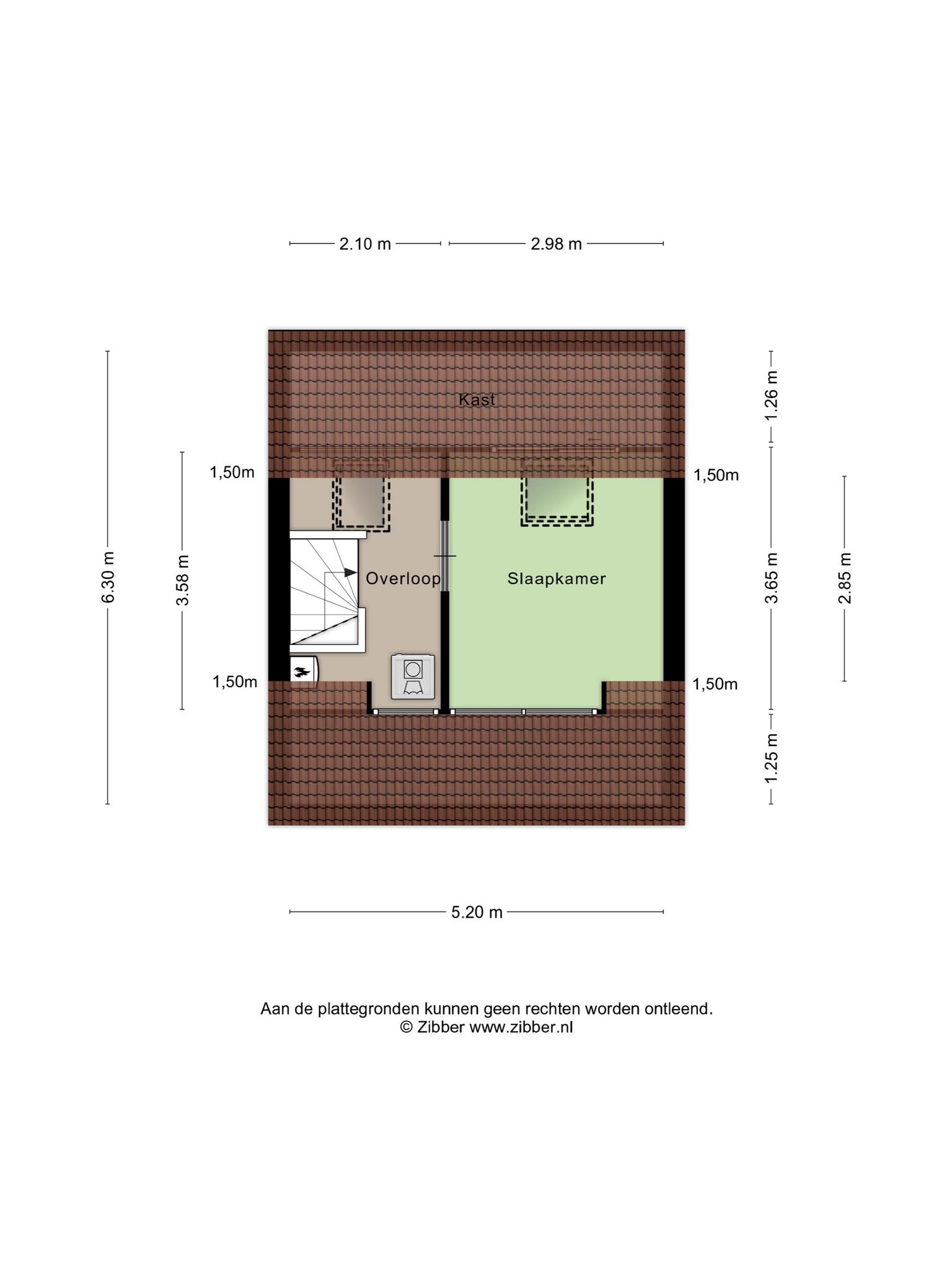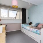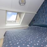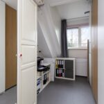 De zolderkamer is ruim van afmeting en eveneens zeer licht door de dakkapel aan de voorzijde en een kunststof Velux-raam aan de achterzijde. Deze vierde slaapkamer is voorzien van een laminaatvloer, behangwanden en bergruimte.