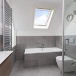 De badkamer is in 2017 volledig vernieuwd, modern en stijlvol afgewerkt en voorzien van een ligbad met thermostaatkraan, douchecabine met regen- en handdouche en thermostaatkraan, badmeubel met wastafel, designradiator, hangend closet, zijraam en kunststof Velux-raam.