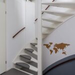 Overloop met vinylvloer, gestucte wanden en trapopgang.