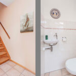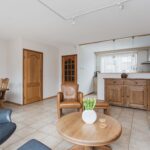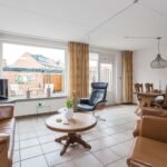 Entree, hal met moderne toiletruimte, garderoberuimte en de vernieuwde zeer complete meterkast. De lichte woonkamer is voorzien van een plavuizenvloer met comfortabele vloerverwarming, een praktische trapkast en biedt toegang tot de fraaie achtertuin. Aan de voorzijde van de woning bevindt zich de open keuken, uitgerust met een Christalite aanrechtblad, 4-pits gasstel, afzuigkap, vaatwasser, combi-oven en een gezellig eetbar.