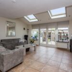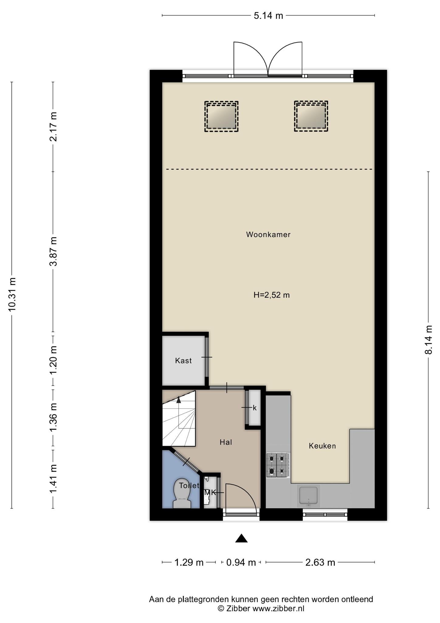 Via de entree/hal bereik het toilet, de trapopgang en de ruime uitgebouwde woonkamer. De uitbouw is voorzien van twee grote dakvensters waardoor er veel lichtval in de ruimte is. De ruime woonkamer is voorzien van een trapkast, ruimte voor een grote zithoek en eettafel. Aan de voorzijde tref je de keuken. De keuken is voorzien van diverse inbouwapparatuur zoals een oven, koel-vriescombinatie, vaatwasser en inductiekookplaat. De hele begane grond is voorzien van een plavuizen vloer met daaronder vloerverwarming.