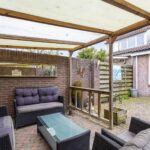 De achtertuin is gelegen op het noorden, maar vanwege de ligging en de lage kap van het huis kun je hier de hele dag genieten van de zon en schaduw.