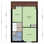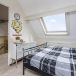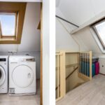 De tweede verdieping in ingedeeld en voorzien van een wasruimte (voor de C.V.-ketel, wasmachine en droger) en vierde slaapkamer. Er is opbergruimte achter de schotten.