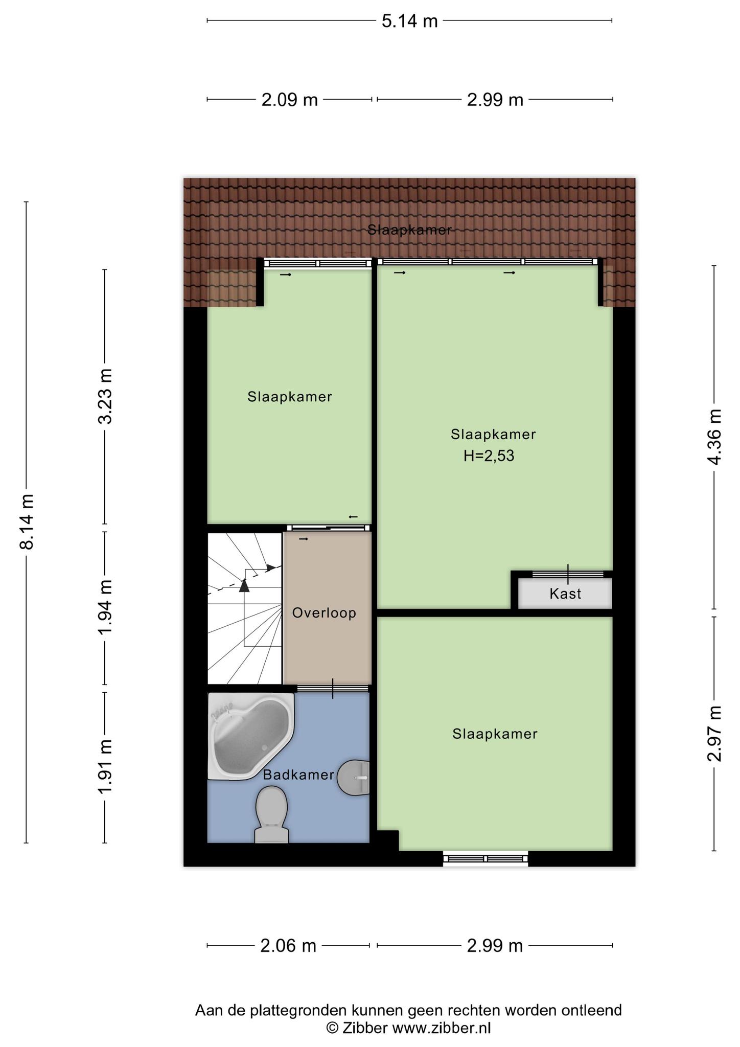 Via de overloop bereik je drie ruime slaapkamers en de badkamer. Deze is voorzien van een douche en wastafel.