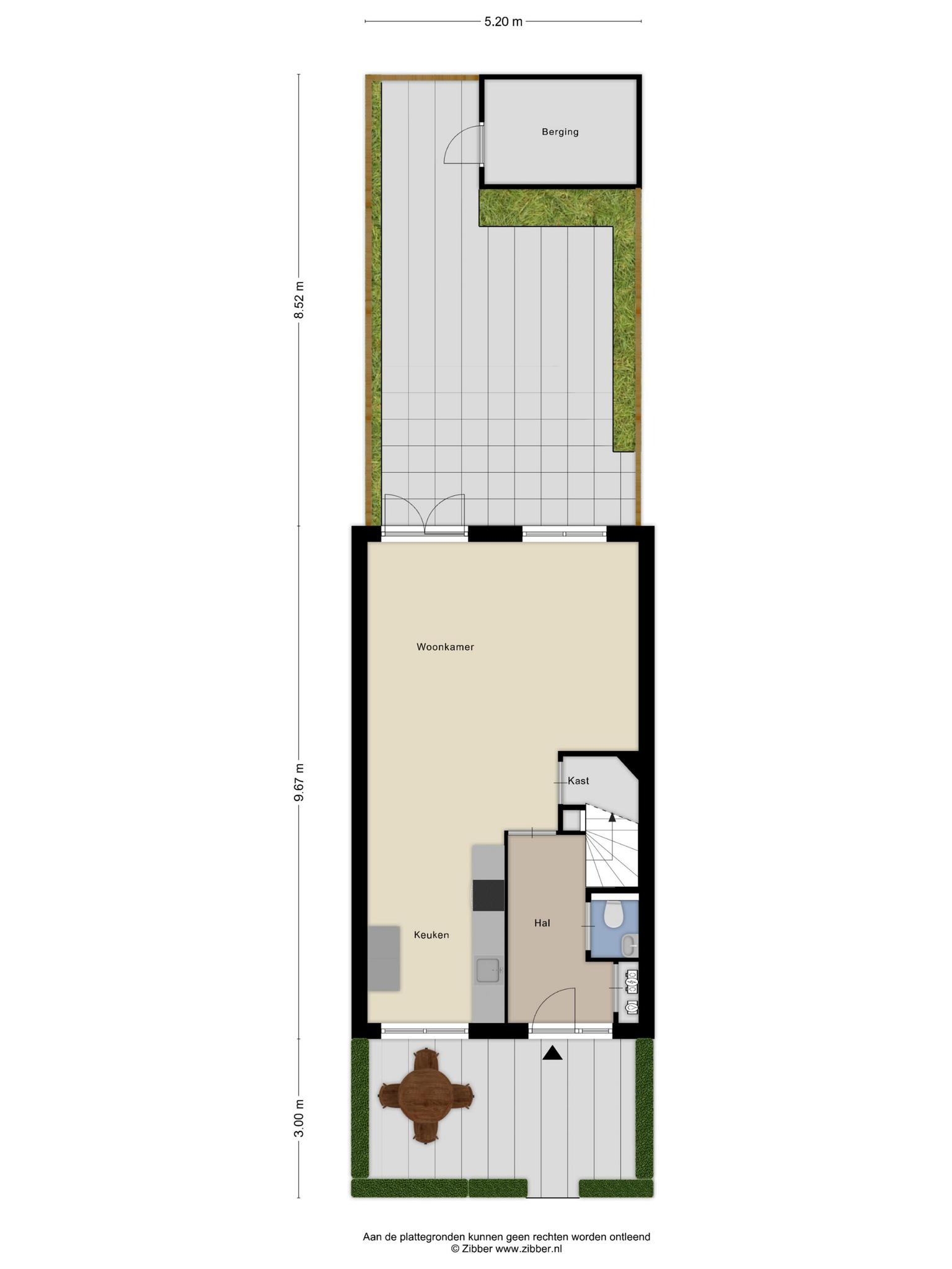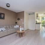Je komt binnen in een ruime hal met garderobe, meterkast, trapopgang en een modern toilet met zwevend closet. De lichte en ruime woonkamer is een fijne plek om thuis te komen, met hoge plafonds, grote raampartijen en strak gestuukte wanden. Aan de voorzijde ligt de moderne keuken, voorzien van diverse inbouwapparatuur en uitzicht op de groene straat.