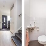 Verzorgde voortuin, ruime entree/ L-vormige hal met garderobe, meterkast, toiletruimte met vrij hangend toilet en fontein, trap naar de eerste verdieping.