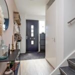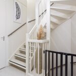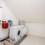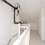 Overloop met c.v. ketel, mechanische ventilatie unit, wasmachine- en drogeraansluiting. De ruimte achter de knieschotten kun je gebruiken als bergruimte.