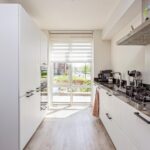 Vanuit de hal kom je in de royale, uitgebouwde woonkamer met trapkast en openslaande deuren naar de achtertuin. De keuken is gesitueerd aan de voorzijde van het huis met prachtige raampartij tot aan de vloer en afgewerkt met een moderne, witte inbouwkeuken met stenen aanrechtblad en diverse inbouwapparatuur, te weten: vaatwasser en oven (beide vernieuwd in 2023),  magnetron, koel-/vriescombinatie, 5 pits gaskookplaat en afzuigkap.