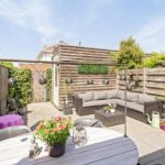 De onderhoudsvriendelijke, fraai aangelegde achtertuin met achterom is gelegen op het noordwesten, keurig aangelegd met fraai terras en een vrijstaande houten berging met elektra. Tevens is er een buitenkraan aanwezig.