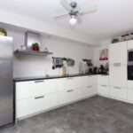 Het huis heeft een mooie grote woonkeuken, die in 2022 is voorzien van een nieuwe Belisol schuifpui met isolerend glas. De keuken is prachtig afgewerkt met een nieuwe PVC tegellook vloer (uit 2022) en glad plafond, voorzien van ventilator. Je hebt de beschikking over een mooie, moderne hoekkeuken met daarin een vaatwasser, oven, magnetron, brede kookplaat en RVS afzuigkap. Boven de keuken bevindt zich een koof met inbouwspots. Naast de keuken staat een grote RVS koel-vriescombinatie. Deze is ter overname.