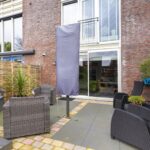 Het huis beschikt over een riante, zonnige tuin op het zuiden, waarin je de hele dag van de zon kunt genieten! De tuin is in 2021 geheel nieuw aangelegd, is mooi afwisselend ingericht met diverse terrastegels, borders gemaakt van stapelblokken, hagen en antracietkleurige schuttingen rondom. Vanuit de achtertuin bereik je via de achterom de carport van ca. 13 m². Deze grenst aan een binnenplaats en aan de ruime houten berging van ca. 11 m²