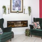 Je komt aan op de overloop die toegang geeft tot de woonkamer. Doordat de woonkamer zich op de gehele 1e verdieping bevindt, is deze bijzonder ruim. In het midden bevindt zich een sfeervolle (gedeeltelijk) ronde muur met fraaie raampjes die uitkijken op de overloop met wenteltrap. Door een prachtige erker met brede vensterbank kijk je schitterend vrij uit op de straat, groenstrook en water. Aan de achterzijde bevindt zich een brede raampartij met deur richting een Frans balkon? De woonkamer mooi afgewerkt met een tegelvloer, glad plafond en brede elektrische haard, die naast een gezellige sfeer ook warmte biedt.