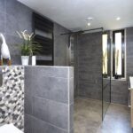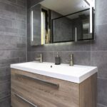 Het huis beschikt over een prachtige nieuwe badkamer, die modern is ingericht met een grote inloop regendouche met massagestralen, zwevend toilet, dubbel wastafelmeubel, verlichte spiegel en badkamerkast. De badkamer is voorzien van een raam en inbouwspots.