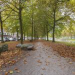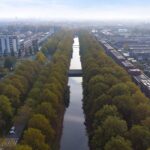 • Vrij uitzicht op straat met brede groenstrook, wandelpad en water aan de overkant
