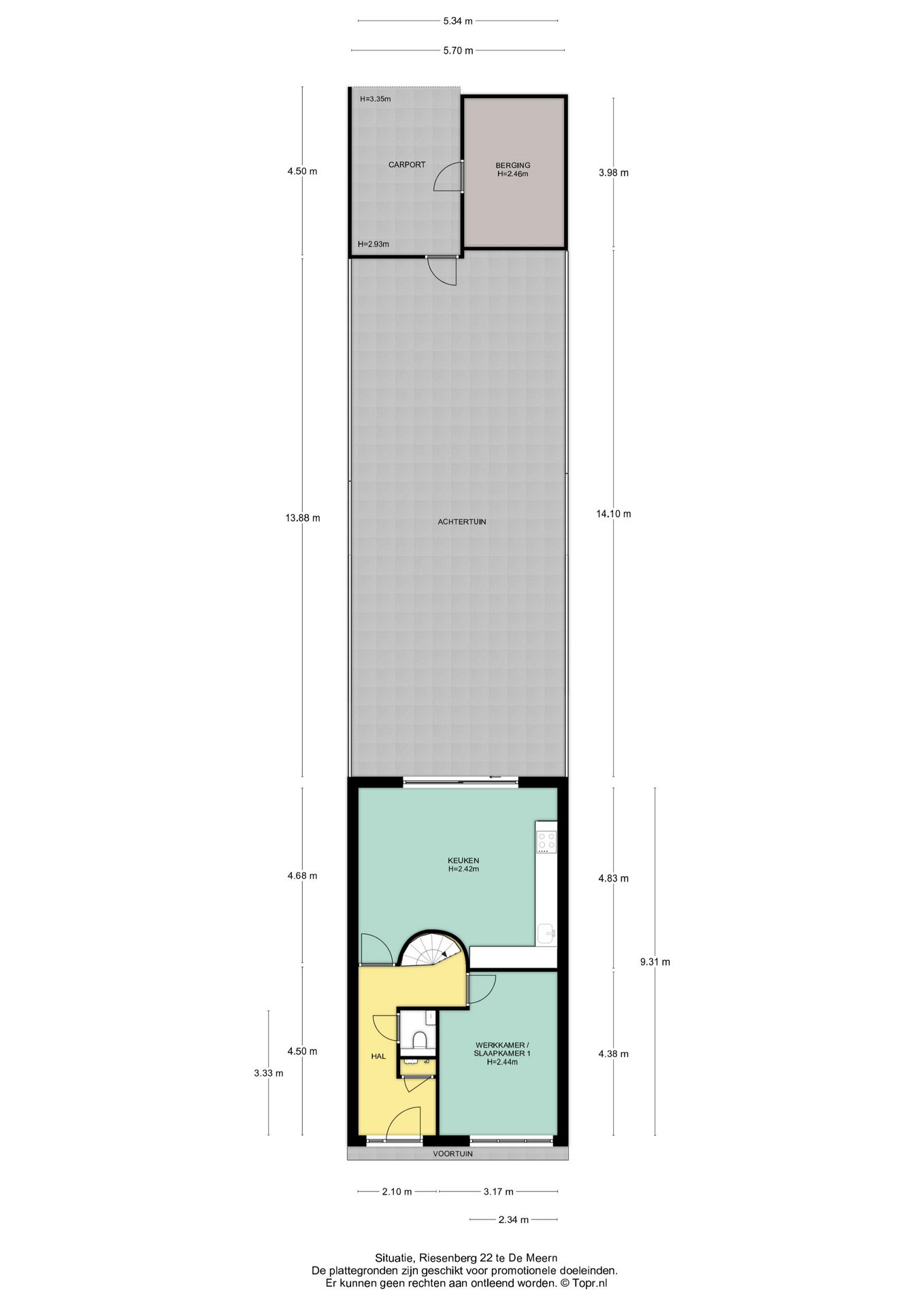 • Carport: 13 m² (achter de tuin, grenzend aan binnenplaats en berging)