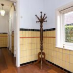 Bij binnenkomst in de vestibule met originele wandtegels, bent u meteen in de jaren 30-sfeer, die dit huis zo bijzonder maakt. Via de hal komt u bij de woonkamer, toilet, trapkast en de trap naar de eerste verdieping. Het toilet is geheel voorzien van tegelwerk en heeft een vrijhangend toilet met fontein. De lichte woonkamer met hoog plafond en erker aan de voorzijde heeft nog de originele en-suite indeling. De schouwen voor houtkachels met origineel tegelwerk zijn aan beide zijden van de schuifdeuren nog aanwezig.