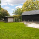 De woning heeft een eigen oprit met royale garage (van ca. 25 m²) die is voorzien van elektra, verwarming, een loopdeur, een vast raam, twee openslaande deuren en aansluitingen voor de wasmachine en de droger. Op de oprit en voor het huis is voldoende plaats om meerdere auto's te parkeren. De grote groene tuin die rondom de woning ligt, geeft veel privacy en wordt gesierd door bomen en struiken die in de verschillende jaargetijden hun diversiteit en kleur laten zien.