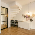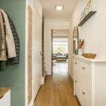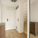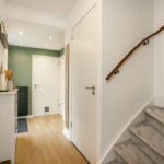 Je komt binnen in een ruime hal met trapopgang, vernieuwde meterkast (2020) en toegang naar het toilet en de uitgebouwde tuingerichte woonkamer.