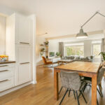 Aan de voorzijde bevindt zich de keuken (2011). De nette keuken met inbouwapparatuur te weten gaskookplaat, afzuigkap, oven, koel-vriescombinatie, vaatwasser vernieuwd in 2023, rest van 2011 biedt meer dan voldoende bergruimte.