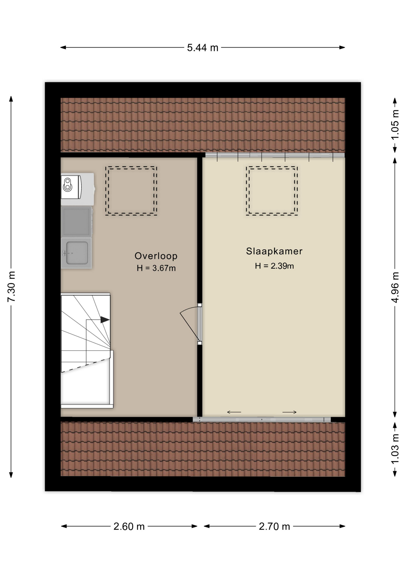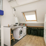 Via de vaste trap bereik je de opgeknapte tweede verdieping. De ruimte is praktisch ingedeeld en beschikt over handige opbergkasten, knieschotten, een cv-ruimte, afgeschermde wasruimte.
