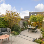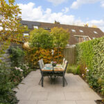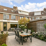 Vanuit de uitgebouwde woonkamer bereik je de vernieuwde achtertuin van circa 11 meter diep met achterom. De tuin is in het voorjaar van 2025 vernieuwd en heeft een heerlijk ruim terras en prachtige sierborders. Hier is het volop genieten.