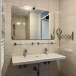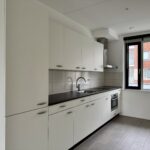 Binnenkomst in de hal, met toegang tot de eerste slaapkamer aan de voorzijde. Vanuit de hal bereik je tevens de inpandige berging met aansluiting voor de wasmachine. De ruime en lichte woonkamer is voorzien van een moderne open keuken, uitgerust met een koel-vriescombinatie, vaatwasser, combimagnetron, inductiekookplaat en motorloze afzuigkap. Vanuit de woonkamer kom je in een tweede hal, die toegang biedt tot de tweede slaapkamer, het separate zwevende toilet met fonteintje en de volledig betegelde badkamer. Deze is ingericht met een verbrede wastafel met twee kranen, een grote spiegel, handdoekenradiator en een comfortabele inloopdouche.
