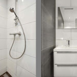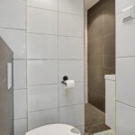 De badkamer is in 2016 vernieuwd en ziet er verzorgd uit. De ruimte is praktisch ingedeeld met een wastafelmeubel, inloopdouche en toilet.