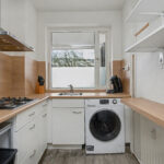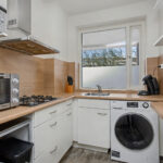 De keuken is functioneel en voorzien van: een 4-pits gaskookplaat, magnetron, afzuigkap en de wasmachineaansluiting.