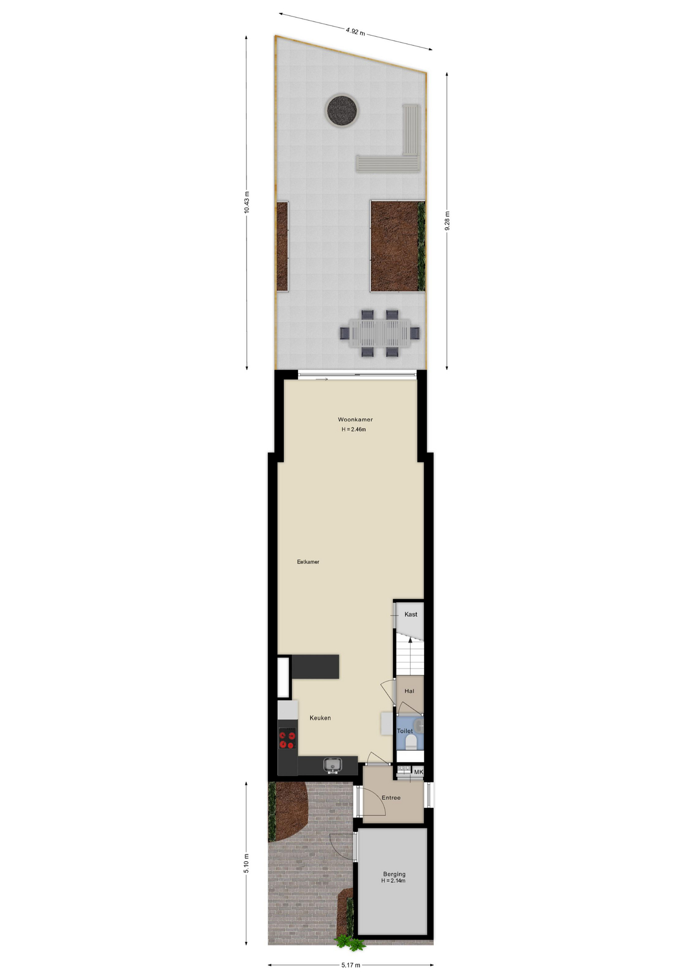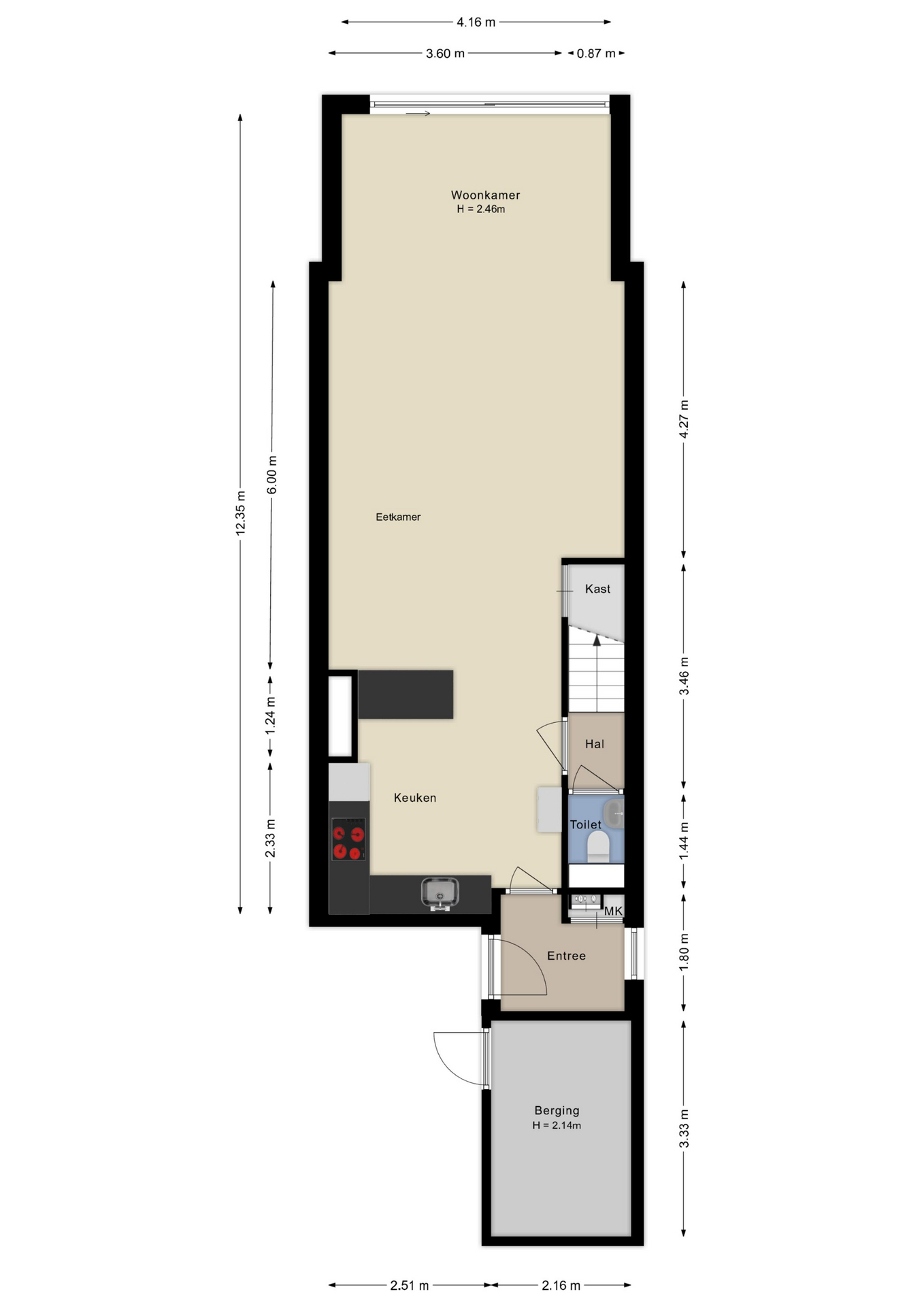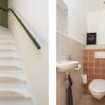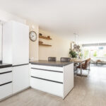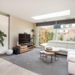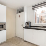 Je komt binnen in de entree met hal en meterkast. Via een tussenhal bereik je de toiletruimte, voorzien van een hangend toilet met fontein, en de trap naar de verdieping. De royale woonkamer is in 2019 uitgebouwd en voorzien van een fraaie lichtstraat, wat zorgt voor een heerlijke lichtinval. De ruimte is afgewerkt met strak gestucte wanden, een PVC-vloer en beschikt over een praktische trapkast. Vanuit de woonkamer heb je toegang tot de achtertuin.