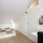 Via een vaste trap bereik je de tweede verdieping met een voorzolder voorzien van bergruimte en de omvormer van de zonnepanelen. Daarnaast is hier een vierde ruime slaapkamer aanwezig, eveneens voorzien van laminaat.