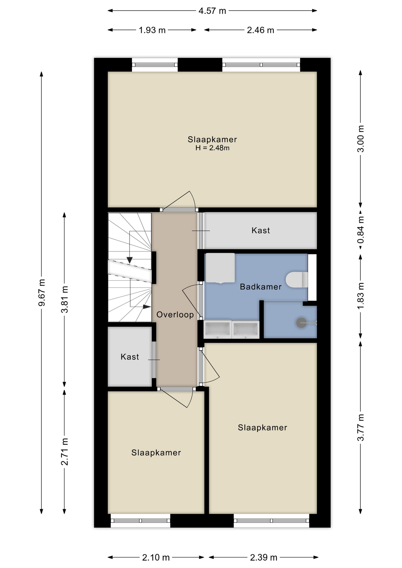 Op de overloop bevinden zich twee praktische bergkasten, waarvan één is voorzien van de CV-combiketel (2021/2022) en de MV-unit. Verder zijn er drie slaapkamers, allen netjes afgewerkt met laminaatvloeren.