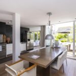 Aan de tuinzijde is de uitgebouwde leefkeuken gerealiseerd. Deze heeft de beschikking over een Smeg gasfornuis, afzuigschouw, Amerikaanse koel-/vriescombinatie en een vaatwasser. Middels openslaande deuren is er toegang tot de zonnige achtertuin (zuidwest), gelegen aan het water. Achter de keuken is een extra multifunctionele ruimte gecreëerd. Je zou hier o.a. kunnen werken of de kinderen kunnen hier lekker spelen. De geïsoleerde garage is van binnenuit bereikbaar en hier is verwarming, water en elektra aanwezig. Openslaande deuren naar de voorzijde.