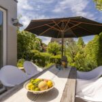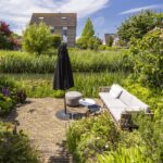 Wat een heerlijke tuin! Er zijn meerdere smaakvolle zitjes gerealiseerd. Hiervandaan kijk je uit op mooie beplanting en door de ligging aan het water kun je genieten van de rustgevende geluiden welke horen bij het wonen aan het water.