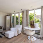 Royale living aan de voorzijde met erker en openhaard. De gehele begane grond is voorzien van eiken vloer en glad gestuukte wanden en plafond. Dit geeft het geheel een verzorgde indruk.