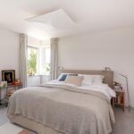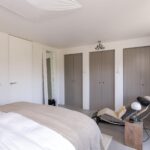 De masterbedroom (voorheen 2 slaapkamers) aan de voorzijde heeft een balkon en inbouwkastenwand. De gehele verdieping is gestuukt.