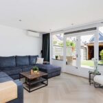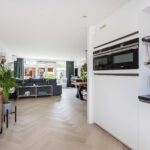De royale, tuingerichte woonkamer met vloerverwarming en airconditioning nodigt uit tot ontspannen wonen. Openslaande deuren verbinden binnen moeiteloos met buiten. Aan de voorzijde tref je een moderne open keuken (2018) die is voorzien van alle denkbare inbouwapparatuur — ideaal voor kookliefhebbers!