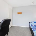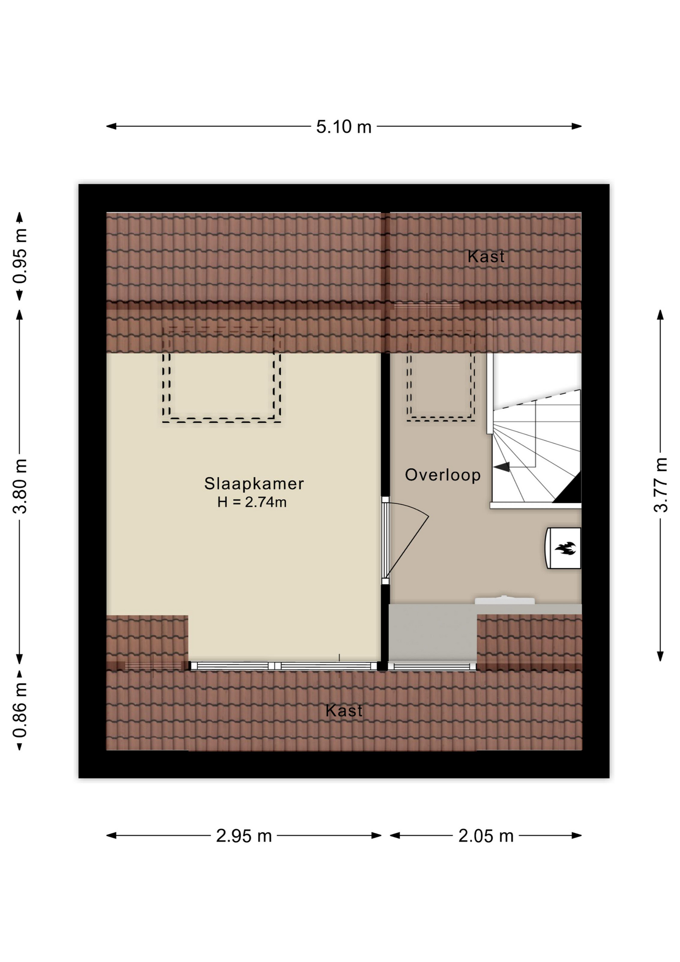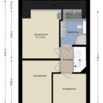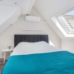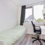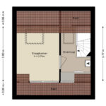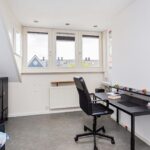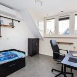 Vaste trap naar ruime overloop met plek voor de wasmachine, droger en cv-installatie. Achter knieschotten is extra bergruimte. De vierde slaapkamer is eveneens ruim, voorzien van een dakkapel en airco.