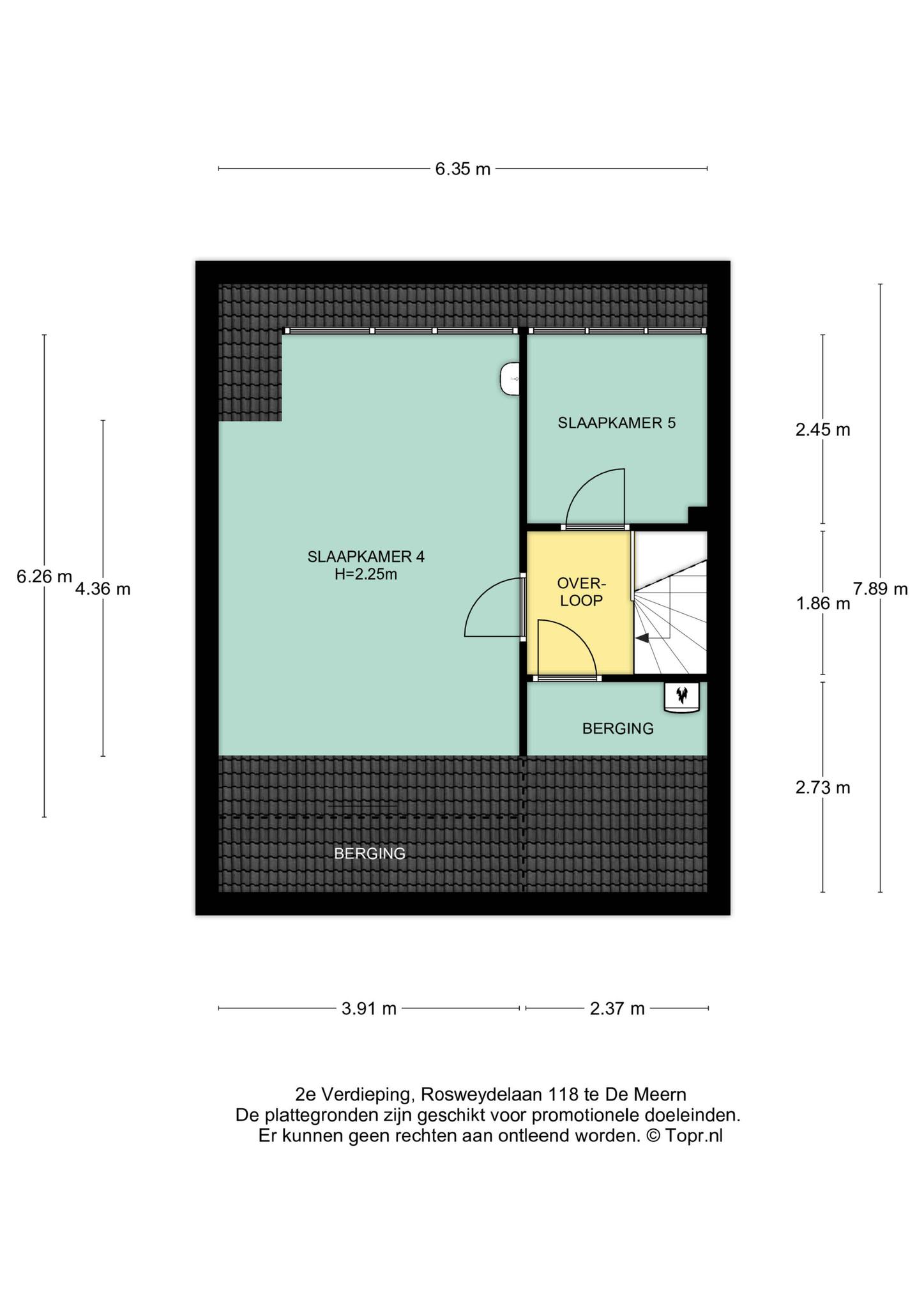 De overloop biedt toegang tot twee slaapkamers, beide met dakkapel. Ook bevindt zich op deze verdieping een aparte bergruimte met cv-ketel.